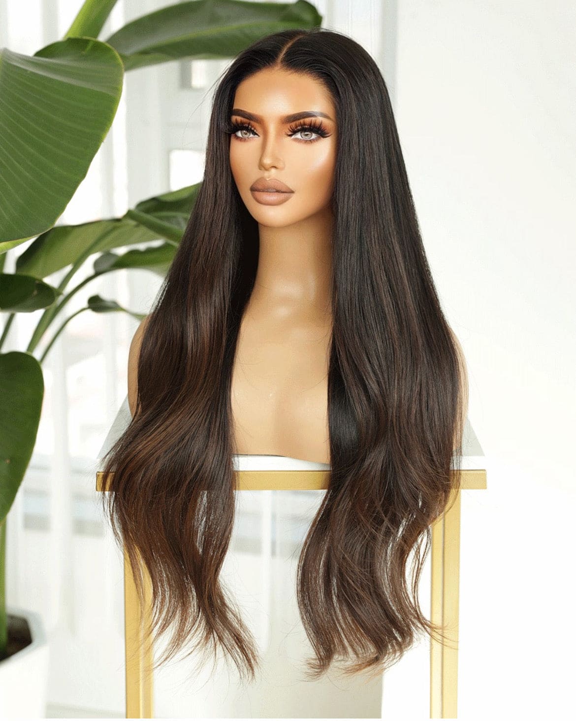 Kyle features exquisite warm highlights that add depth and dimension to her luscious locks. Crafted with meticulous attention to detail, this wig captures the essence of effortless beauty and timeless chic.
