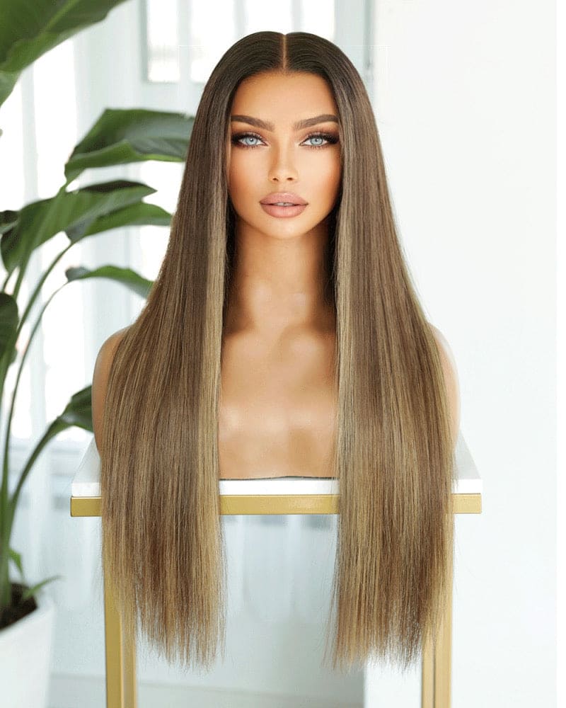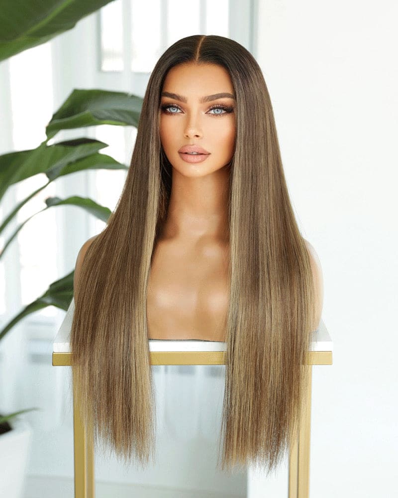 Hailey features a mesmerizing blend of buttery blonde and rich brunette tones, creating a luscious Brondie hue that radiates warmth and sophistication. Crafted with precision and care, this wig is designed to enhance your natural beauty and elevate your style.