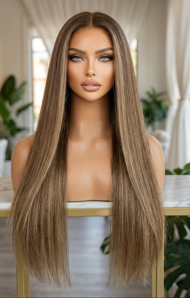 Hailey features a mesmerizing blend of buttery blonde and rich brunette tones, creating a luscious Brondie hue that radiates warmth and sophistication. Crafted with precision and care, this wig is designed to enhance your natural beauty and elevate your style.